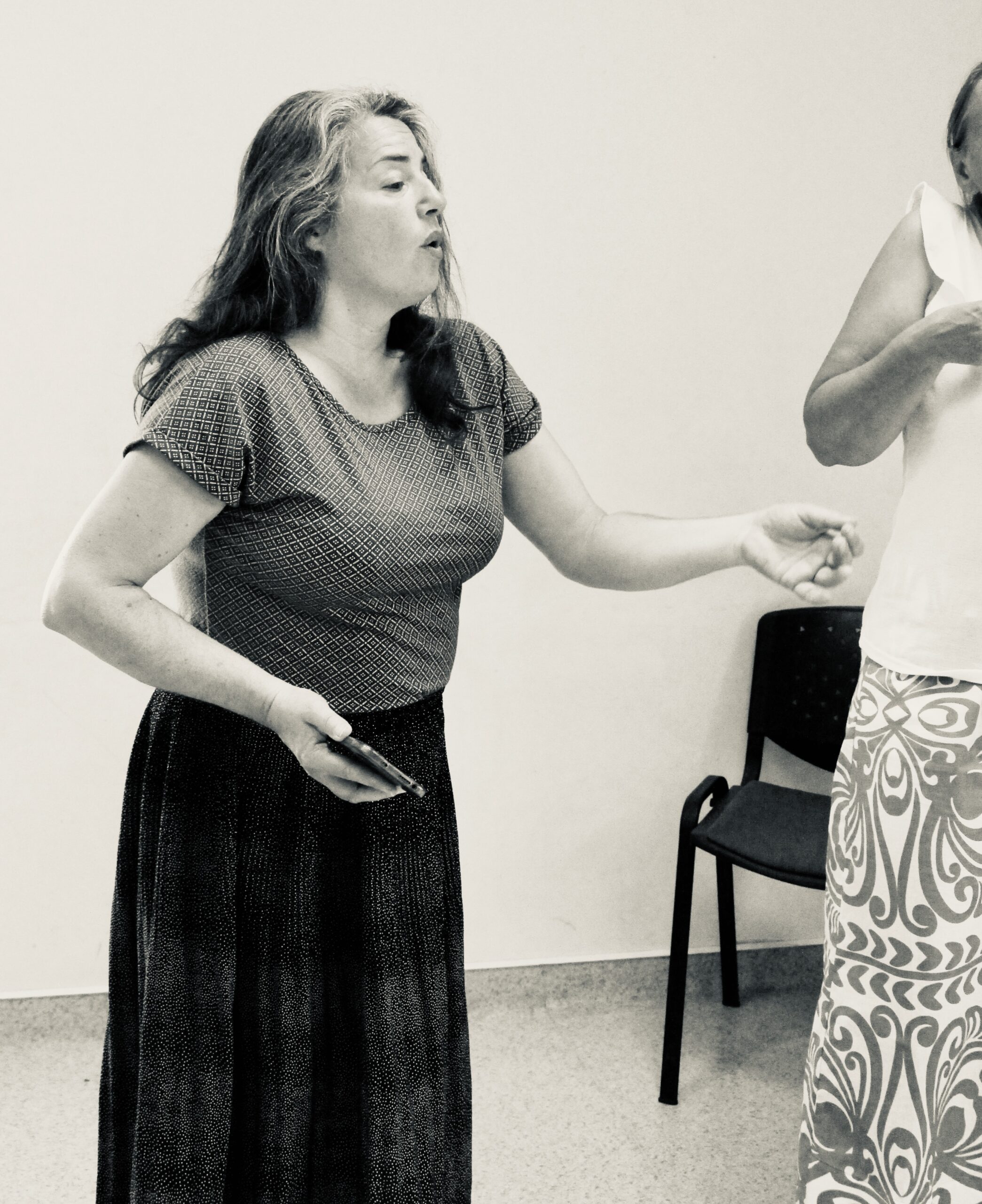 Il n’y a pas de pré-requis technique pour commencer à chanter, pas besoin de savoir le solfège, je travaille avec ou sans partition, l’expérience étant acquise par les ressentis du corps, plutôt que par l’intellect.